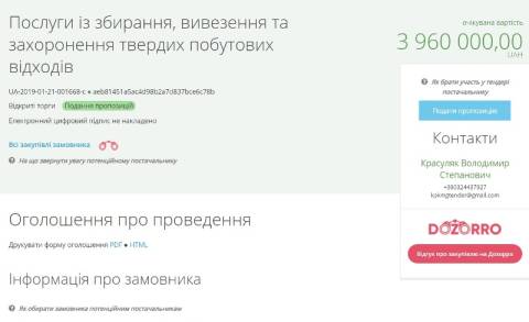 Відтак, новий аукціон відбудеться 6 лютого, а вартість надання послуг залишиться незмінною – 3 960 000 грн.