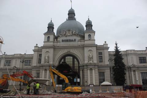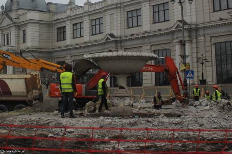 Демонтаж фонтана на Двірцевій площі поблизу Головного залізничного вокзалу Львові та деяка інша чудасія.