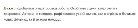 Вирішив, написав і, звичайно, що ще якось можна зрозуміти його веселкову піднесеність, бо ж якось невдобно зараз (у важкий для країни час) критикувати такий патріотичний фільм. Можна зрозуміти все, але Нек дещо помилився, коли написав, що йому сподобались сцени зі Джамалою, коли вона так афективно почала роздвоюватись у дзеркалах.