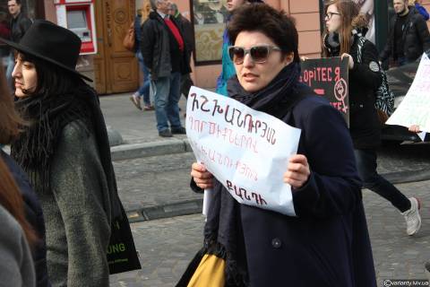 Та це не єдині борчині-гості з пострадянських країн. Десь між львів'янок зі скромним плакатом маршувала навіть горда кавказька горянка.