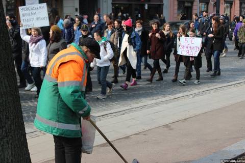 Жіночий марш до 8 березня у центрі Львова минув під латентною лівизною та толерацією всіх споглядаючих збоку.
