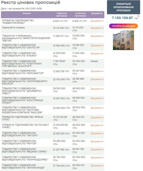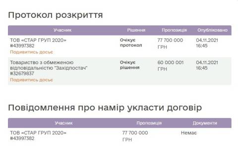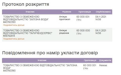 Аукціон стартував 4 листопада, участь у ньому взяли 18 компаній та підприємців. Переможцем обрали ТзОВ "Залізна Вода", що запропонувало найвищу ціну у 60 000 001 грн. Додамо, початкова вартість закупівлі становила 7 130 139,87 грн.