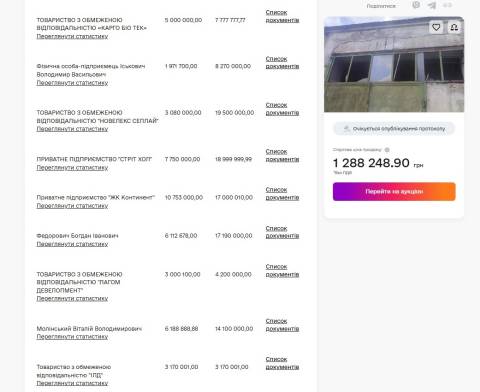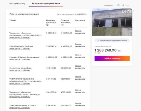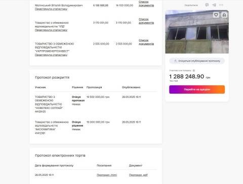 Аукціон стартував 28 травня, у торгах змагалося 25 учасників й вартість закупівлі зросла у 15,14 раза: від стартової ціни у майже 1,29 млн грн до 19,5 млн грн. Переможцем обрали ТзОВ "Новелекс Сеплай".
