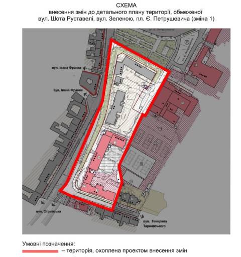 Сьогодні, 17 жовтня, на сесії Львівської міської ради депутати затвердили зміни до детального плану території, обмеженої вул. Шота Руставелі, вул. Зеленою, пл. Є. Петрушевича у Львові.