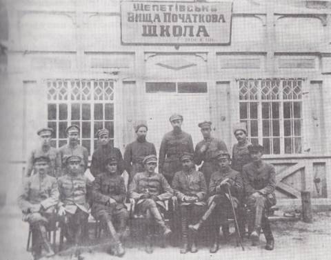 на фото: Команда 11-ї дивізії січових стрільців у Шепетівці, 1919 рік. Зліва направо сидять: підполковник Цівірко, підполковник Юрій Отмарштайн, комендант 11-ї дивізії полковник Роман Сушко, невідомий, сотник Гнатченко. Стоять зліва направо: сотник М. Максим, поручник Л. Савойка, сотник М. Строніцький, двоє невідомих, хорунжий С. Миколин.