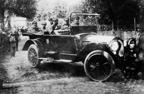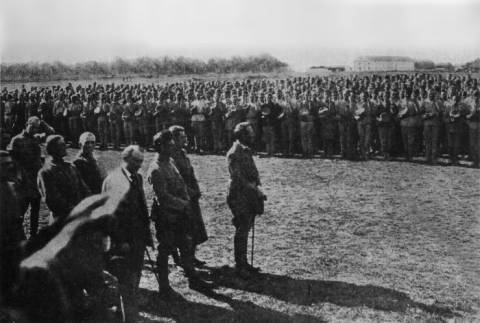 на фото: Присяга новобранців з вишколу Січових Стрільців. Староконстянтинів, жовтень 1919 року. Попереду – Головний Отаман Симон Петлюра, у другому ряді ліворуч – полковник Євген Коновалець.