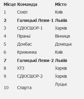 Таким чином, підсумкова таблиця чемпіонату має наступний вигляд: