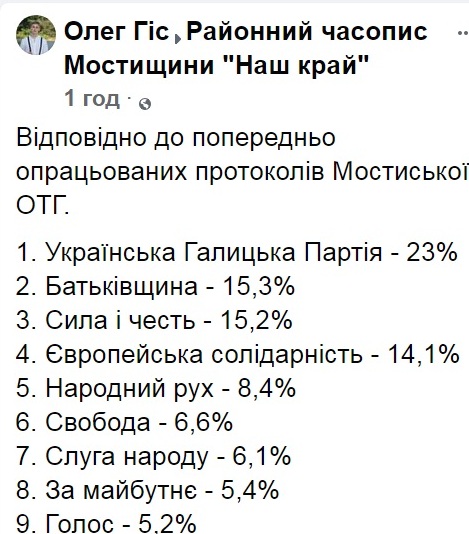 Про це повідомив Олег Гіс на сторінці районного часопису Мостищини "Наш край" у Фейсбуці.