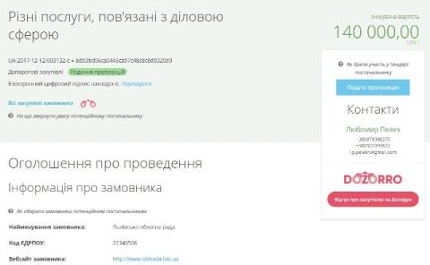 Нагадаємо, у жовтні Львівська обласна рада оголосила закупівлю на професійні дизайнерські послуги щодо розробки дизайну нового веб-сайту обласної ради та встановила початкову ціну у 30 000 грн.