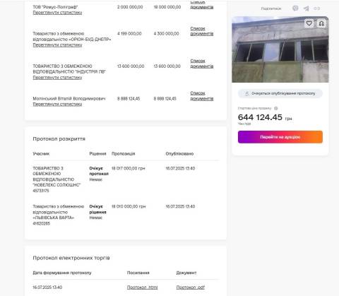 Цього разу у торгах змагалося 11 учасників й вартість закупівлі зросла від стартової ціни у 644 тис. грн до 18 млн грн. Переможцем цього разу обрали ТзОВ "Новелекс Солюшнс".