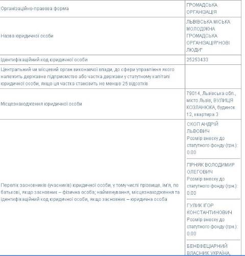 За даними державного реєстру Львівська міська молодіжна громадська організація "Нові люди" заснована в 2000 році Володимиром Гірняком, Ігорем Гуликом та Андрієм Скопом.