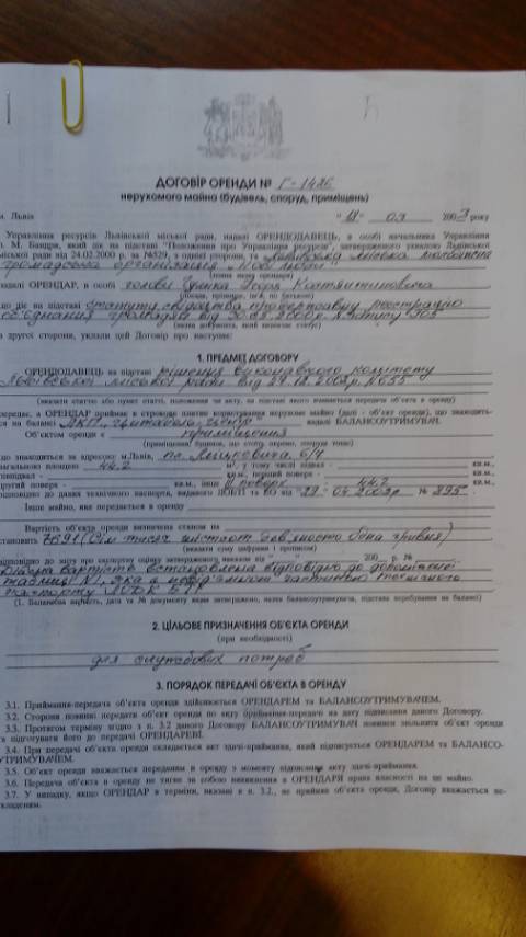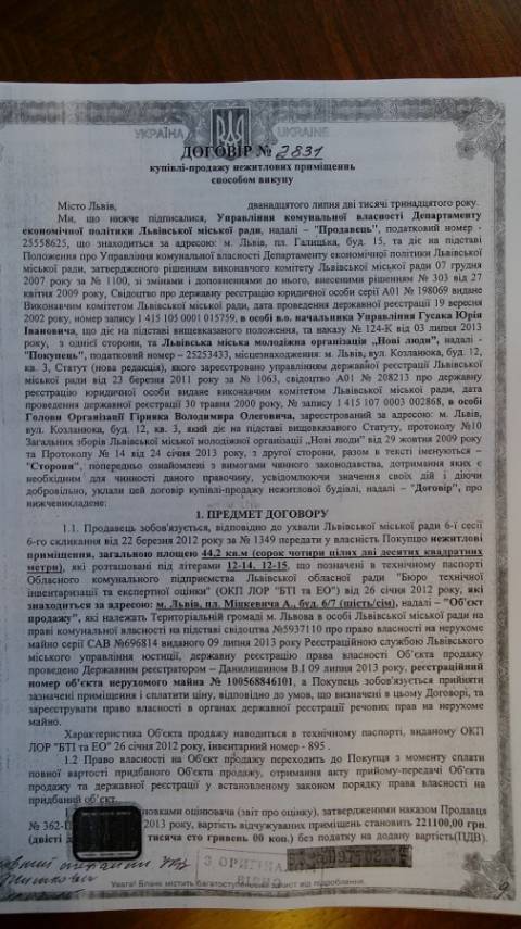 Фотографії документів, які підтверджують факт купівлі приміщення площею 44 метри квадратних за двісті двадцять одну тисячу гривень, опубліковані також.