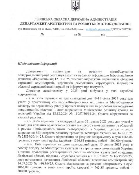 Про це повідомила Львівська ОВА у відповідь на офіційний запит Варіантів.