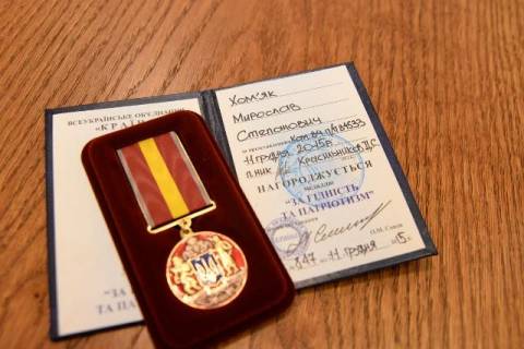 Цю відзнаку голові Львівського обласного осередку політичної партії «Наш край» Мирославу Хом'яку особисто вручив командир взводу зенітно-ракетної батареї Михайло Бочан.