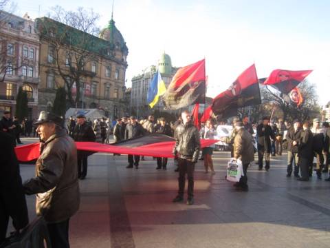 Вчора ряд громадських організацій провела віче й марш в підтримку петиції до Президента України з вимогою надати червоно-чорному стягу офіційний статус прапора Збройних сил України.