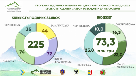 Асоціація "Єврорегіон Карпати – Україна" завершила прийом заявок на конкурс ініціатив місцевих карпатських громад – 2022. Загалом було отримано 225 проєктних заявок на загальну суму гранту у 49,9 млн грн.