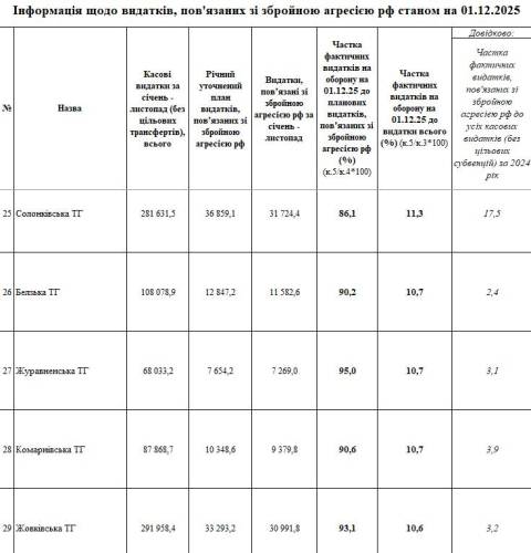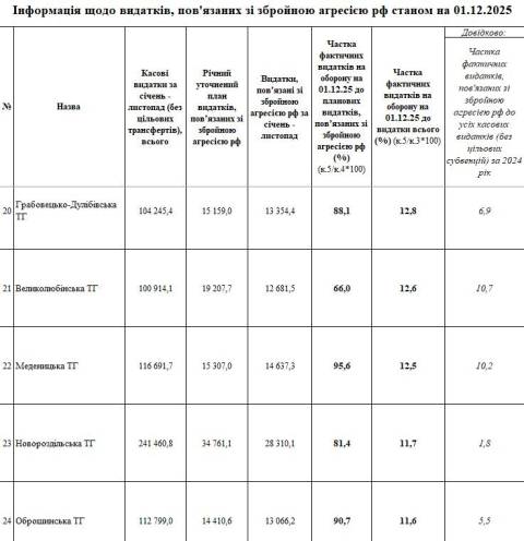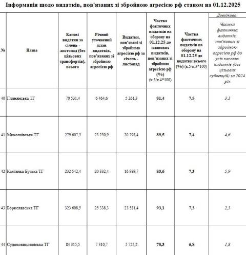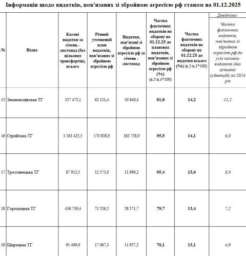 Загалом 19 громад області витратили на оборону менше ніж 5% свого бюджету.
