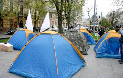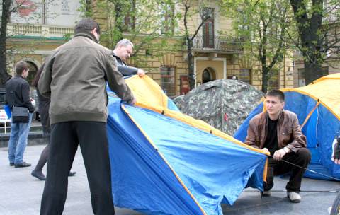 Учасники акції протесту обіцяють прожити в розставлених біля пам’ятника Шевченкові наметах допоки Юлія Тимошенко не оголосить про закінчення свого голодування.