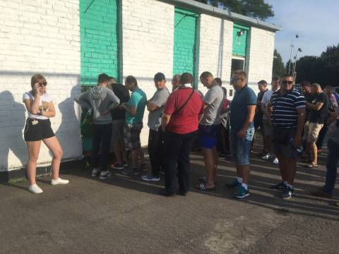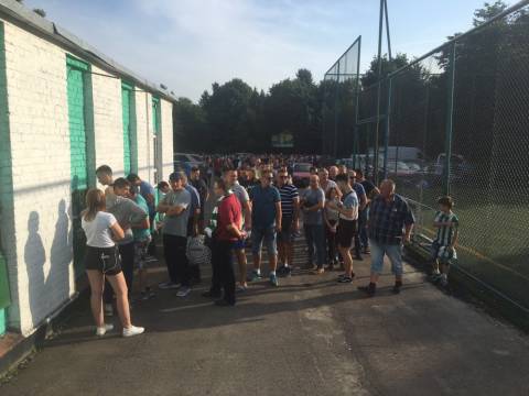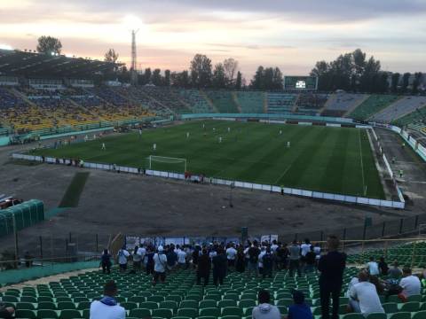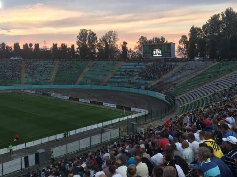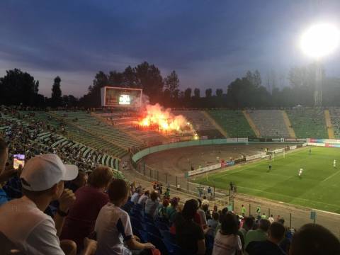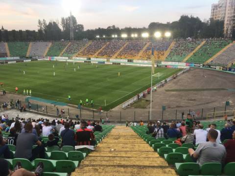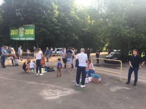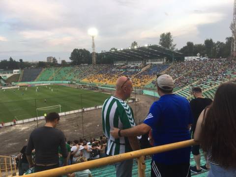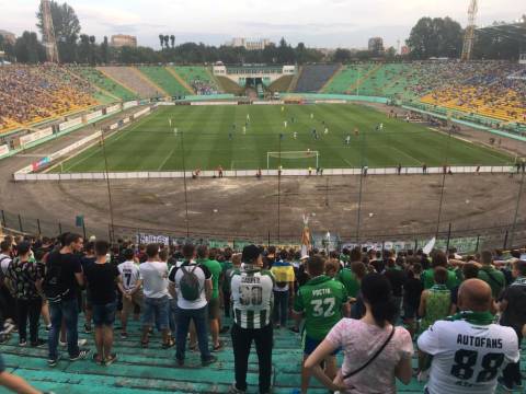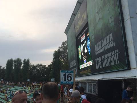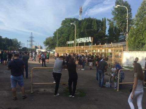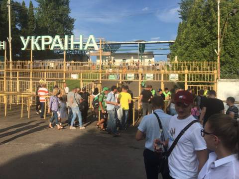 Галас. Шум. Не дивно, адже площа перед ворітьми стадіону в одну мить стала великим мурашником. Де хтось уже проходить у внутрішню частину стадіону, а хтось лише займає своє місце у черзі, формуючи довгу стрічку до касових вікон. У кількох метрах від кас, свою гру на штучному полі проводили аматори. Не знаємо, хто там переміг, проте емоцій на полі вистачало сповна. Лише бігборд із логотипом зелено-білих і надписом "сезон 2017/18" тихо заховався у листях дерев. Можливо, його пора вже замінити?