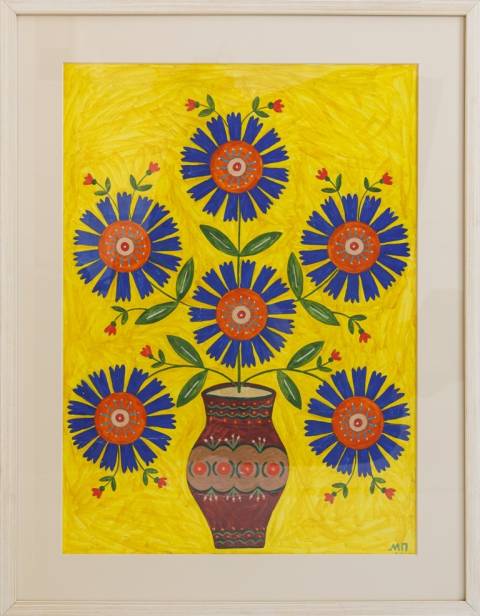 Під час аукціону вартість картини Марії Примаченко "Квіти у горшку" зросла з 14,5 до 60 тисяч доларів.