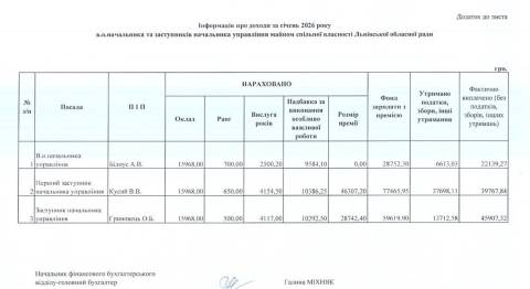 Натоміть перший заступник Білоуса Віктор Кусий, який раніше очолював це управління й якого постійно супроводжували корупційні скандали, за у січні отримав 77 465,95 грн зарплати.