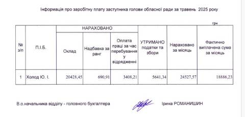 У травні заступнику голови Львівської облради Юрію Холоду нарахували 24 тисячі гривень зарплати.