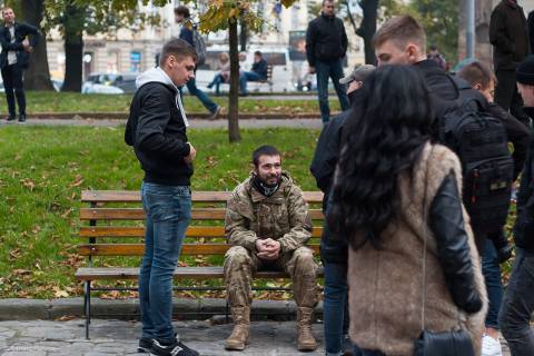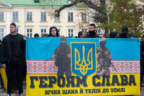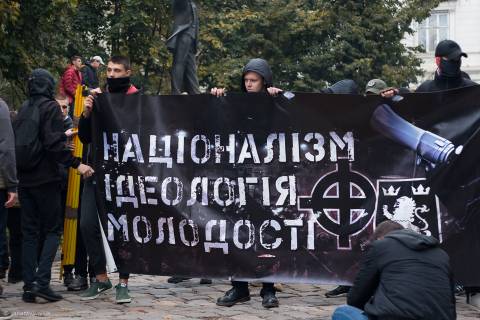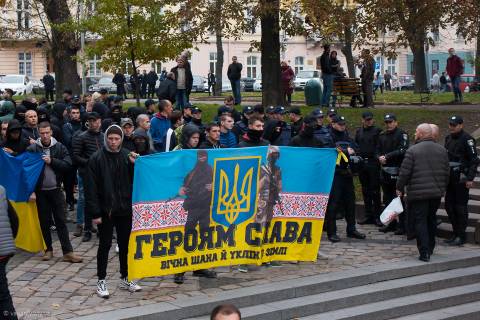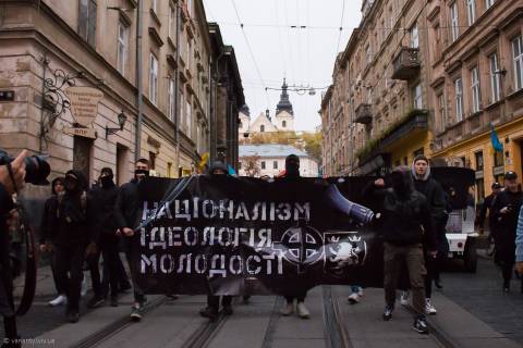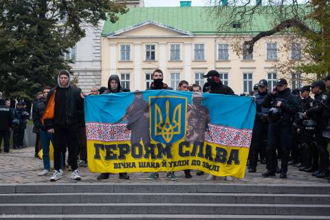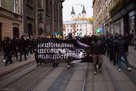 Марш УПА у центрі Львові від місцевого Правого сектору.