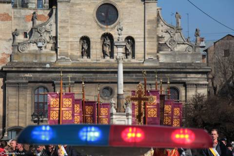 Хресна хода у Львові за участі: голови Львівської ОДА Олега Синютки, міського голови Львова Андрія Садового та архієпископа Львівського (УГКЦ) Ігоря (Возьняка).