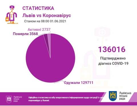 Станом на 08.00 год у Львові та Львівщині підтвердили 136016 випадків інфікування коронавірусом (з них у Львові – 66186), з них 3568 випадків смертельні (з них у Львові – 1752), а 129711 пацієнтів одужали (у Львові – 63195).