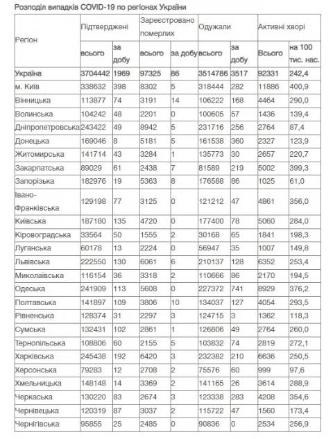Натомість в Україні зареєстрували 3704442 випадки зараження коронавірусом, з них 97325 людей померли, а 3514786 людей – одужали. За добу захворіли на коронавірус 1969 осіб.