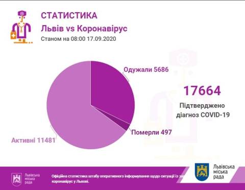 Станом на 08.00 год у Львові та Львівщині підтвердили 17664 випадки інфікування коронавірусом, з них 497 випадків смертельні, а 5686 пацієнтів одужали.