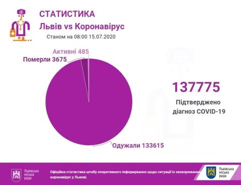 Станом на сьогодні у Львові та Львівщині підтвердили 137775 випадків інфікування коронавірусом (з них у Львові – 67077), з них 3675 випадків смертельні (з них у Львові – 1801), а 133615 пацієнтів одужали (у Львові – 65096).