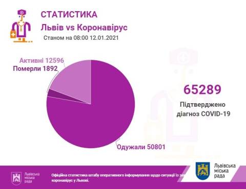 Станом на 08.00 год у Львові та Львівщині підтвердили 65289 випадків інфікування коронавірусом (з них у Львові – 30834), з них 1892 випадки смертельні (з них у Львові – 854), а 50801 пацієнт одужав (у Львові – 24308).