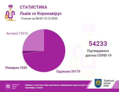Станом на 08.00 год у Львові та Львівщині підтвердили 54233 випадки інфікування коронавірусом (з них у Львові – 24359), з них 1542 випадки смертельні (з них у Львові – 696), а 39179 пацієнтів одужали (у Львові – 16968).