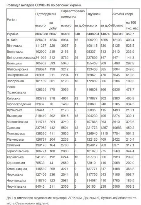 Натомість в Україні зареєстрували 3637038 випадків зараження коронавірусом, з них 94432 людини померли, а 3408294 людини – одужали. За добу захворіли на коронавірус 6647 осіб.