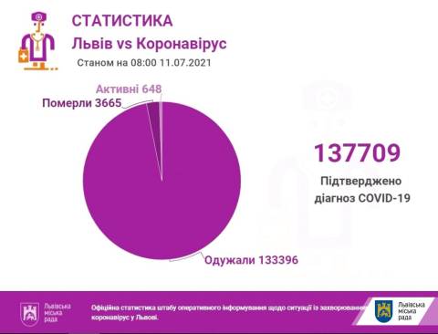 Станом на сьогодні у Львові та Львівщині підтвердили 137709 випадків інфікування коронавірусом (з них у Львові – 67034), з них 3665 випадків смертельні (з них у Львові – 1798), а 133396 пацієнтів одужали (у Львові – 67034).
