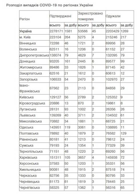 Натомість в Україні зареєстрували 2278171 випадок зараження коронавірусом, з них 53566 людей померли, а 2203429 людей – одужали. За добу захворіли на коронавірус 1581 особа.
