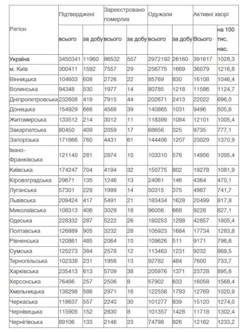 Натомість в Україні зареєстрували 3 450 341 випадок зараження коронавірусом, з них 86 532 людей померли, а 2 972 192 людини – одужали. За добу захворіли на коронавірус 11 960 осіб.