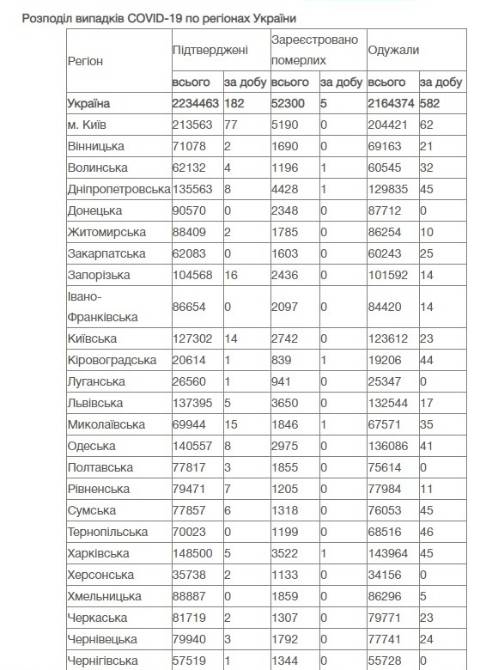 Натомість в Україні зареєстрували 2 234 463 випадки зараження коронавірусом, з них 52 300 людей померли, а 2 164 374 людей – одужали. За добу захворіли на коронавірус 182 осіб.