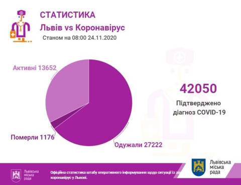 Станом на 08.00 год у Львові та Львівщині підтвердили 42050 випадків інфікування коронавірусом, з них 1176 випадків смертельні, а 27222 пацієнти одужали.