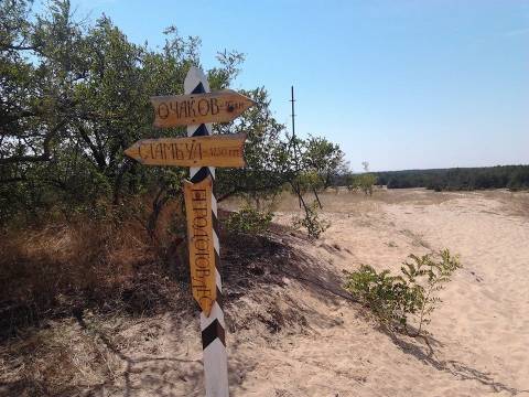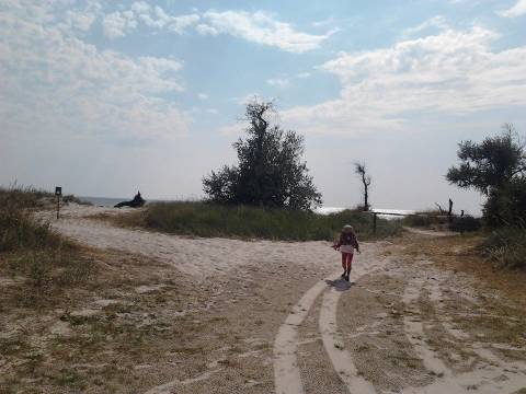"Материк" починається вже за кілька кілометрів від берегової лінії. За невисокими піщаними пагорбами вже починається трохи інший світ. Тут вже можна пити воду із скважин, тут вирощують городину, тут кокочуть кури, тут стоять товстелезні верби, як десь на Полтавщині.