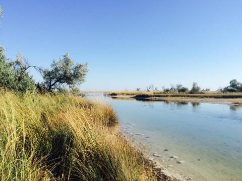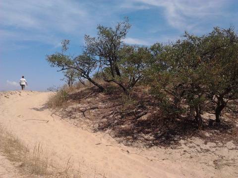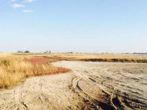 Моря не видно, але горизонт приглушено шумить штормовими хвилями. Втім, залиті сонцем простори мілкого солоного озера, що видніється наподалік, ідеально спокійні. На зарослому травою перехресті сходяться шість чи сім піщаних доріг.