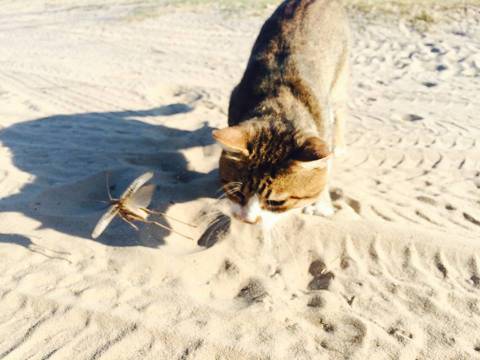 З натужним ревом під’їжджає старий велетень "Урал" з автобусним салоном замість кузова. На пісок зістрибують напівоголені люди з рюкзаками. Біля кіоску відразу ж вишиковується черга за розливним пивом. Кіт втікає, несучи саранчу-мученицю в зубах.