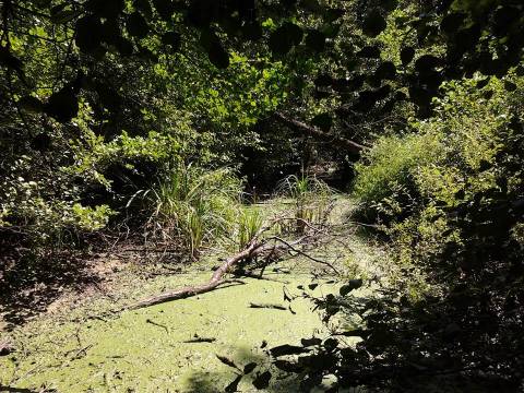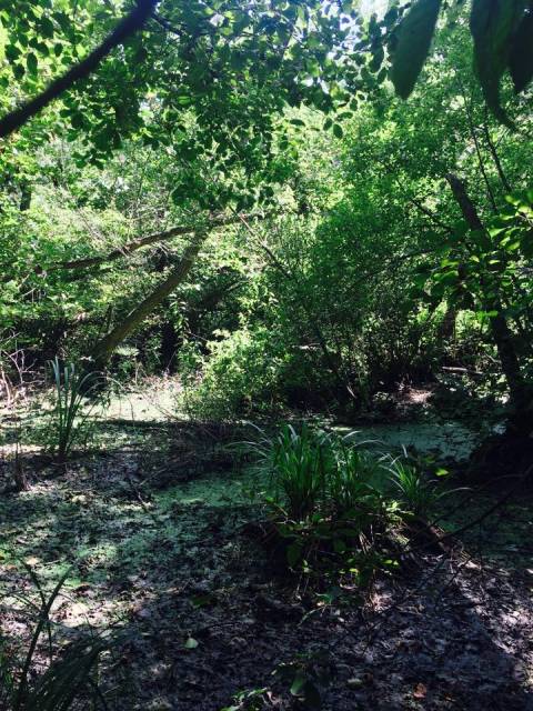 Спускаєшся донизу і заходиш поміж перші стовбури з думкою – "ну так, звичайний південний лісок". Але ще кілька метрів далі і застигаєш перед виглядом справжніх джунглів – височенні вільхи з розгалуженим наземним корінням, рясна трава, напіввисохлі плями болота, зарослі дикої ожини з величезними пазурами, папороть. Зверху чується спів десятків птахів. Тут темно, волого і таємничо, пахне вишуканими сортами червоного чаю.