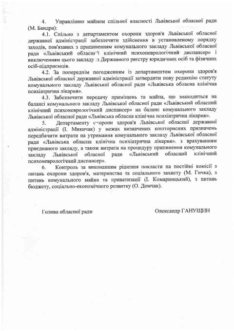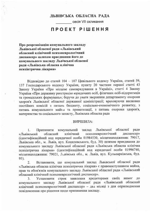 Львівська обласна рада послідовна у своєму бажанні впорядкувати комунальне майно та реформувати діяльність закладів охорони здоров'я. Після продажу ряду приміщень, в яких раніше функціонували медичні установи, а також конкурсу на посаду гендиректорів деяких лікарень, влада приступила до реорганізації роботи служби психіатричної допомоги в області.