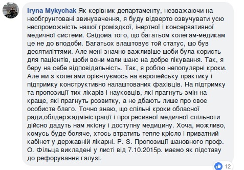 Ми не можемо зупинятись на половині зробленого кроку. Я пригадую 2014 рік, коли професор Фільц неодноразово приходив на комісію охорони здоров'я та переконував нас у тому, що це необхідно робити. І у жовтні 2015 році ми прийняли рішення про приєднання Червоноградського психоневрологіного стаціонару до обласної психіатричної лікарні. Але у бюджеті немає коштів для його реалізації. Професор Фільц обіцяв у своїх повноваженнях провести кадрові рішення, але так сталось, що він залишив свою посаду. Та в цьому немає жодних критичних ускладнень" – сказав він.
