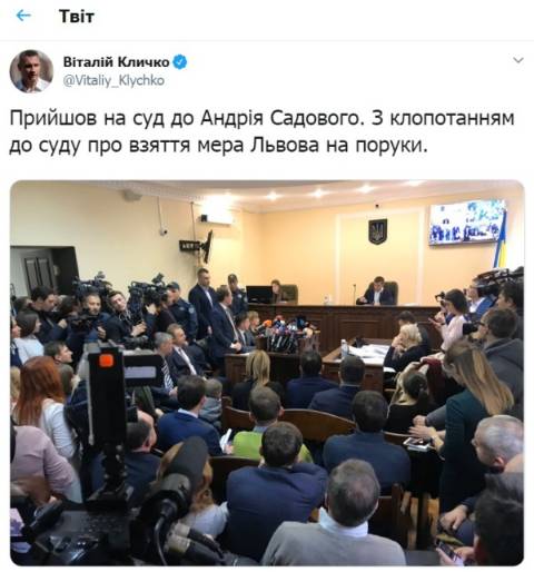 У залі суду, окрім екс-нардепів від Самопомочі та народного депутата Верховної Ради цього скликання Павла Бакунця, які ще раніше заявляли, що готові поручитися за Садового, й міський голова Києва Віталій Кличко.