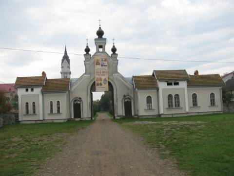 усією округою. Вхід до чернечої обителі "пильнує" оригінальна в’їзна брама з аркою-дзвіницею посередині та трьома хрестами на невеличких куполах.