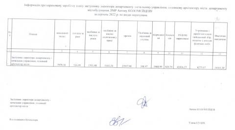 У серпні цього року начальнику управління архітектури та урбаністики Львівської міської ради Антону Коломєйцеву нарахували 42 436,27 грн заробітної плати. Зокрема, у цю суму увійшли такі виплати: