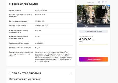 Згідно з закупівлею, йдеться про нежитлове приміщення цокольного поверху загальною площею 14 м² у 3-поверховому будинку в Галицькому районі Львова, що є частиною пам’ятки архітектури місцевого значення й перебуває на балансі ЛКП "Львівське міжміське бюро технічної інвентаризації".